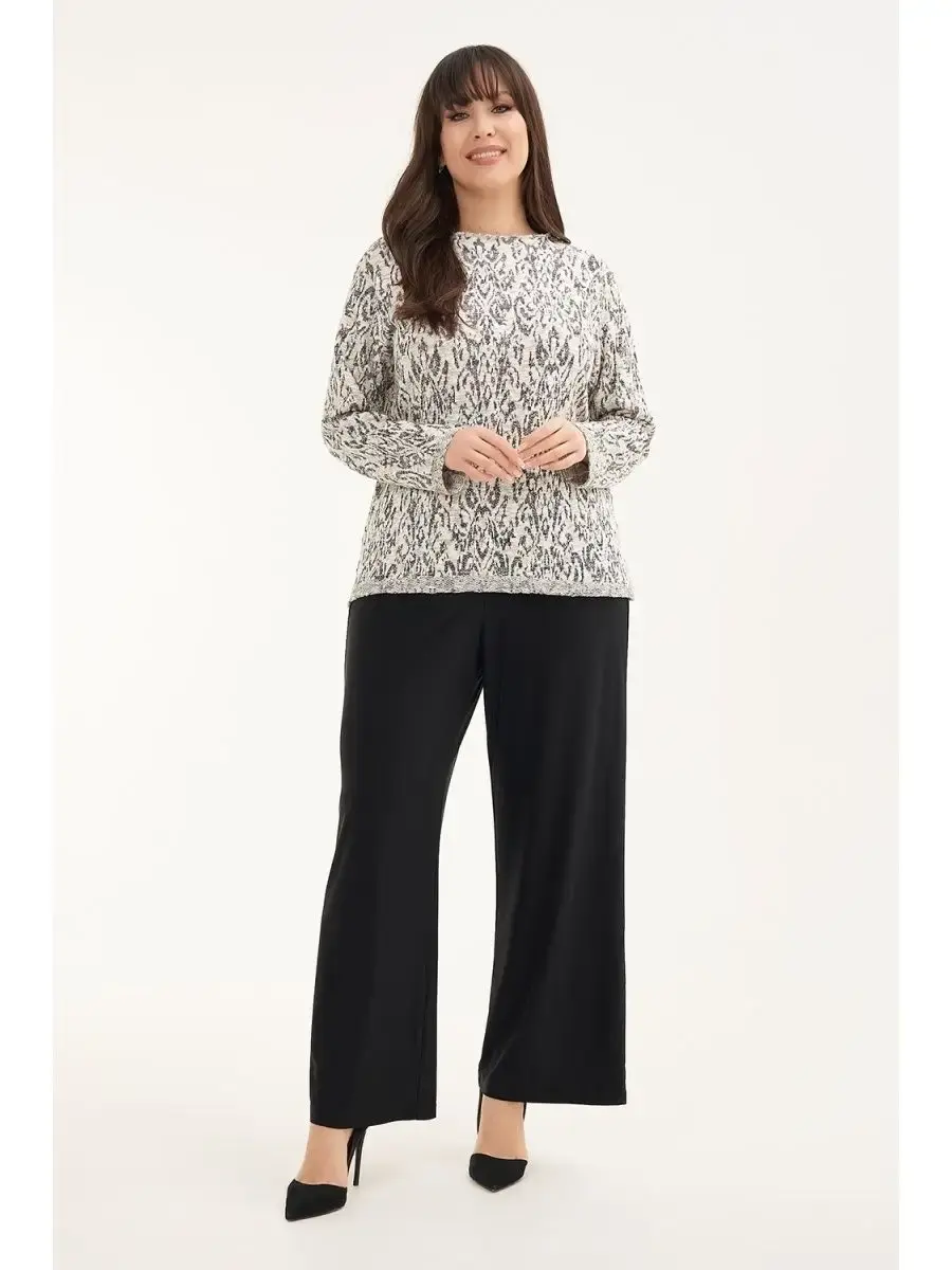 Женская туника бренда OLSI свободного силуэта и длиной до середины бедра станет идеальным выбором для обладательниц пышных форм. Джемпер трикотажный имеет открытые срезы на рукавах и по низу туники. Длинный рукав свитера деликатно скроет особенности фигуры, а его структура позволит носить тунику в любой сезон. Удлиненный свитер станет универсальным дополнением к вашему гардеробу, подходящим для любого случая: будь то прогулка по городу или работа в офисе. Внося нотку свежести в ваш повседневный стиль, женская вязаная кофта оверсайз станет прекрасным подарком для девушки или женщины на Новый год, Рождество, 14 февраля, 8 марта или день рождения. Создавая современный образ с помощью трикотажного свитера, он будет гармонично сочетаться с брюками, дополняя как деловой, так и повседневный гардероб. Благодаря своему удобному крою, эта вязаная туника подойдет женщинам любого возраста и роста. Джемпер женских больших размеров , туники с люрексом. Длина по спинке/длина рукава соответственно:р.50-70см/58,5см;р.52-70,5/58,5см;р.54-71см/58,5см;р.56-71,5см/58,5см;р.58-72см/58,5см;р.60-72,5см/58,5см;р.62-73см/59см;р.64-73,5см/59см.