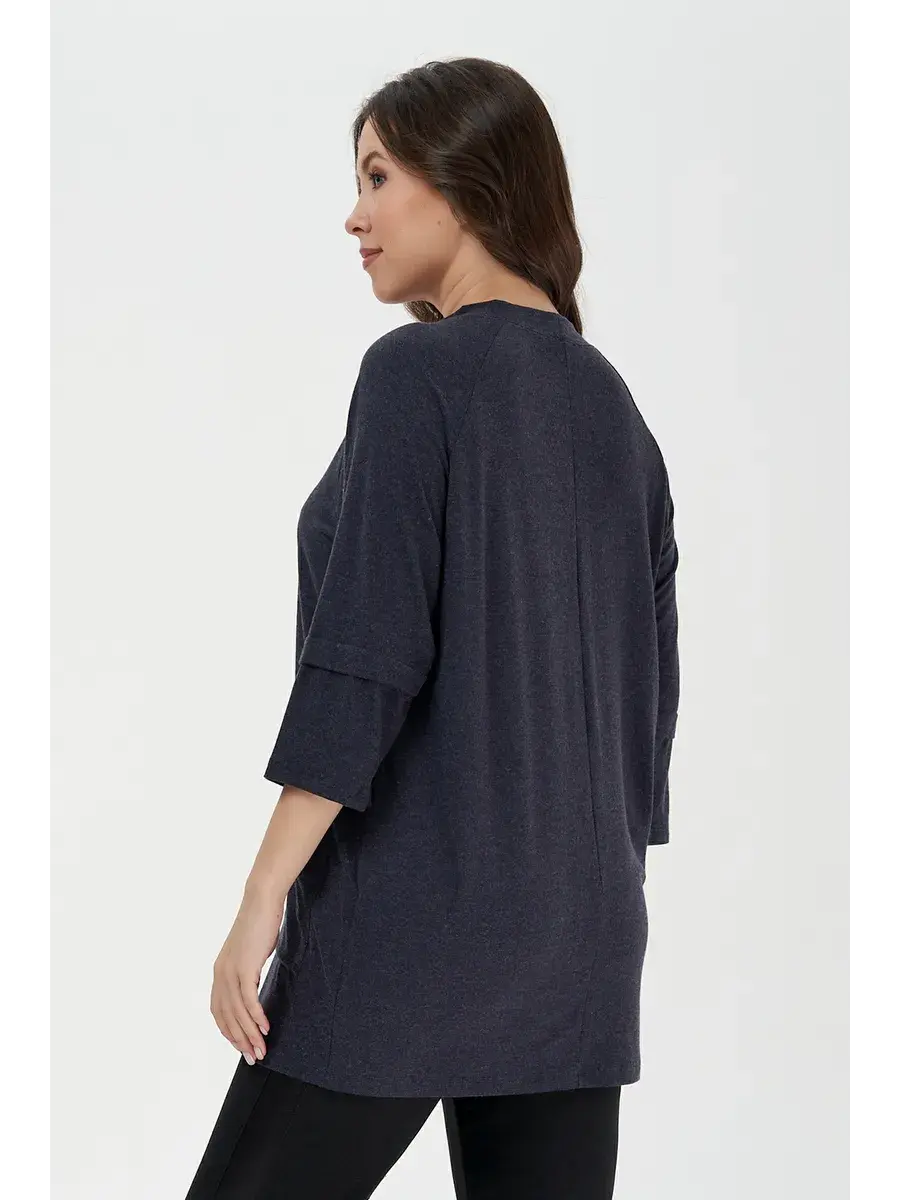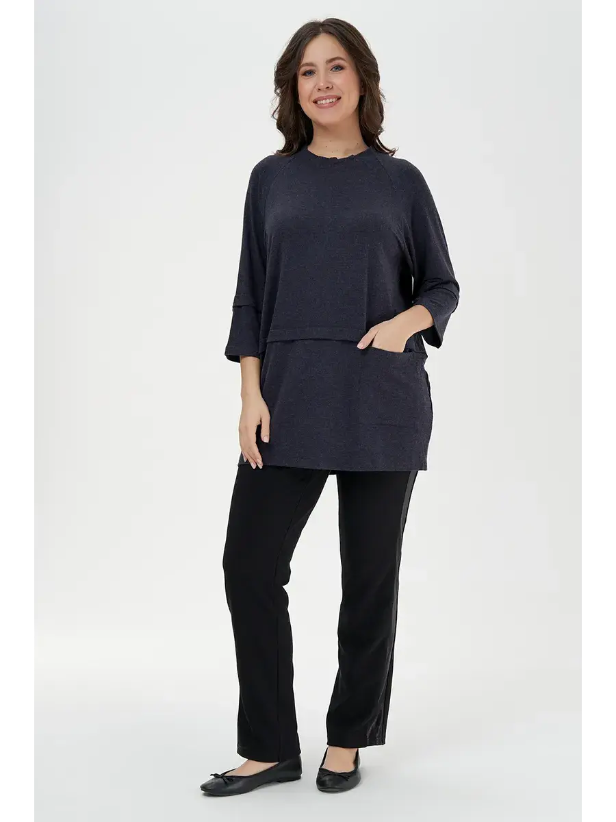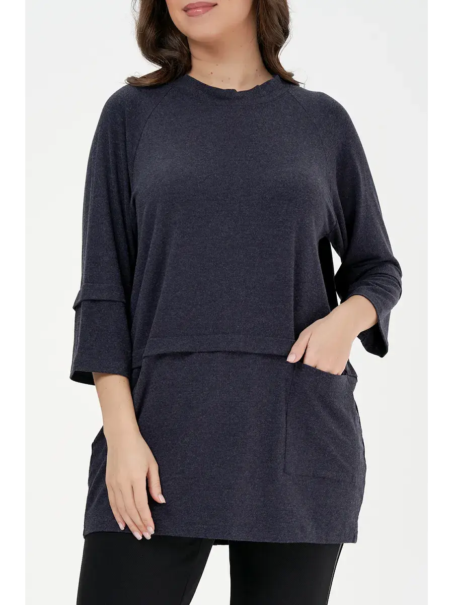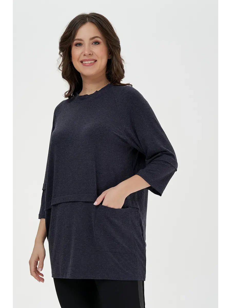 Повседневная женская туника больших размеров, прямого кроя с карманами, рукав 3/4. Выполнена из мягкой приятной на ощупь вискозы.