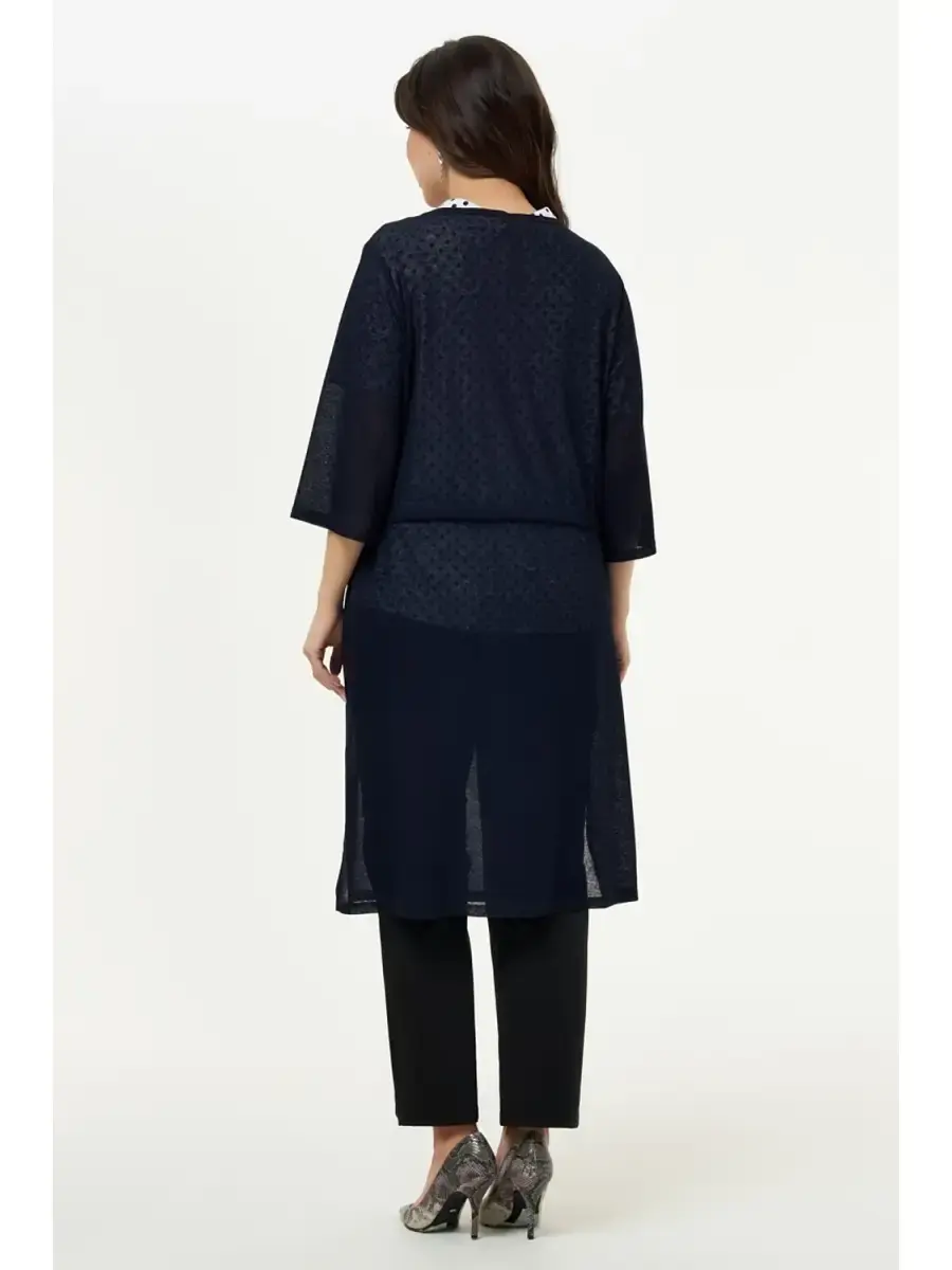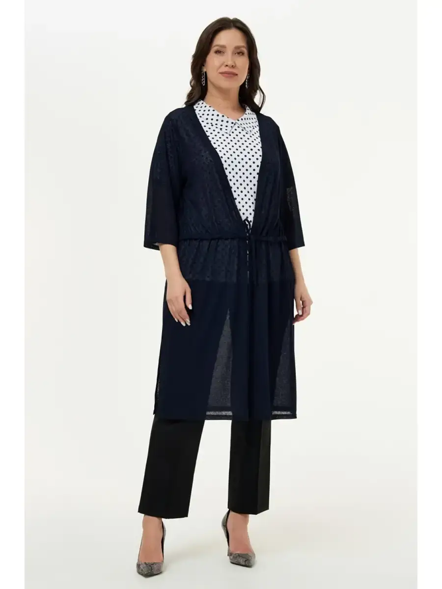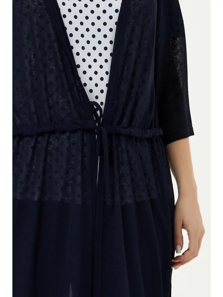 Пляжная и повседневная туника из полупрозрачного трикотажного полотна в фактурную полоску, прямого кроя, на кулиске.