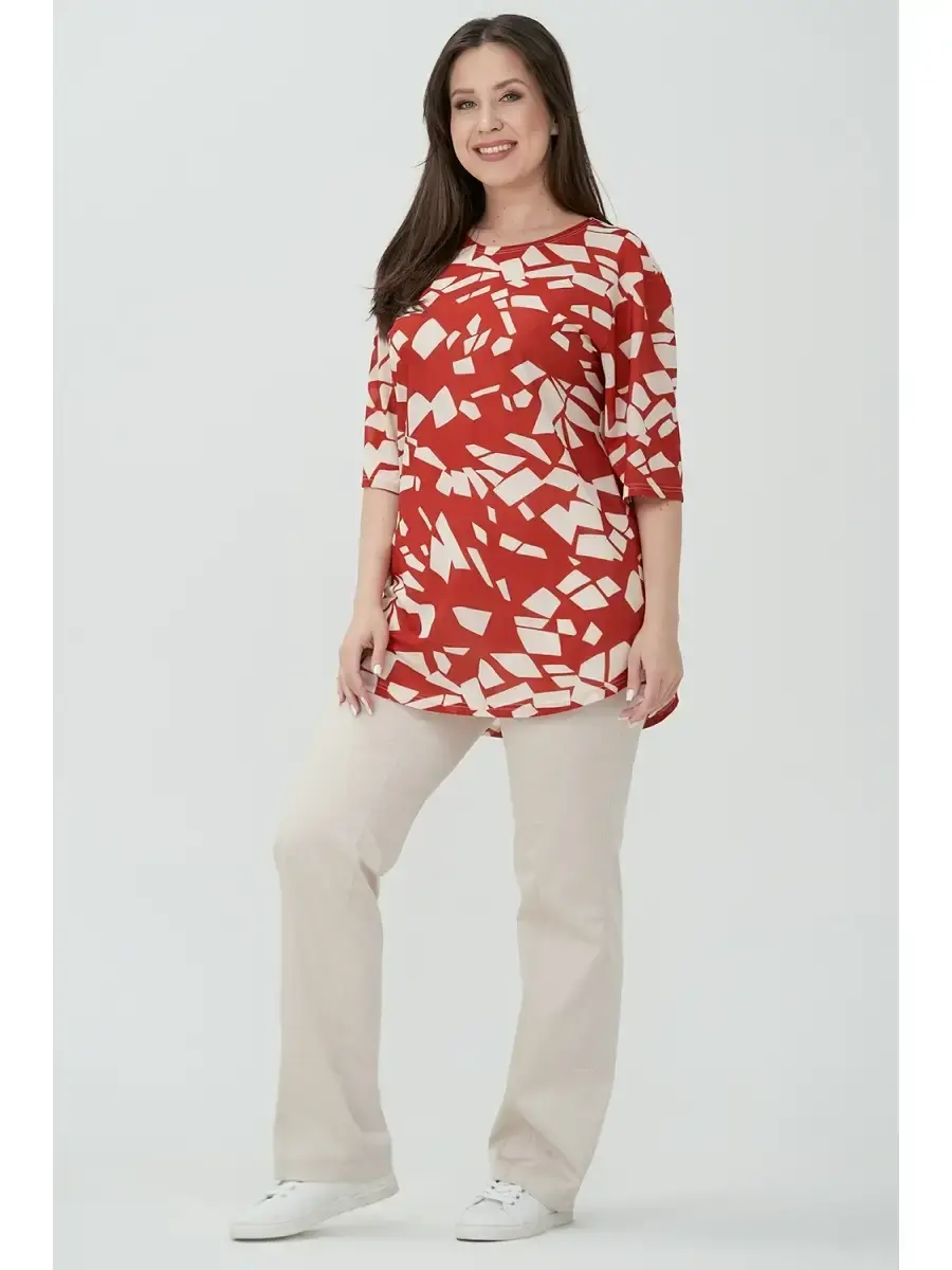 Удлиненная женская футболка свободного кроя выполнена из полотна по типу "сетка" с эластаном. Базовая вещь современного гардероба, легко гармонирует с джинсами, брючками, шортами, лосинами. Длина изделия по спинке в р.52,54,56,58 -78см.
