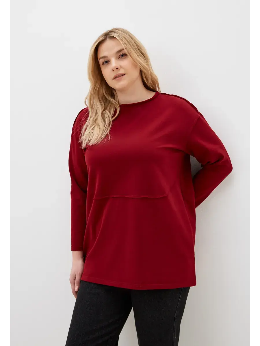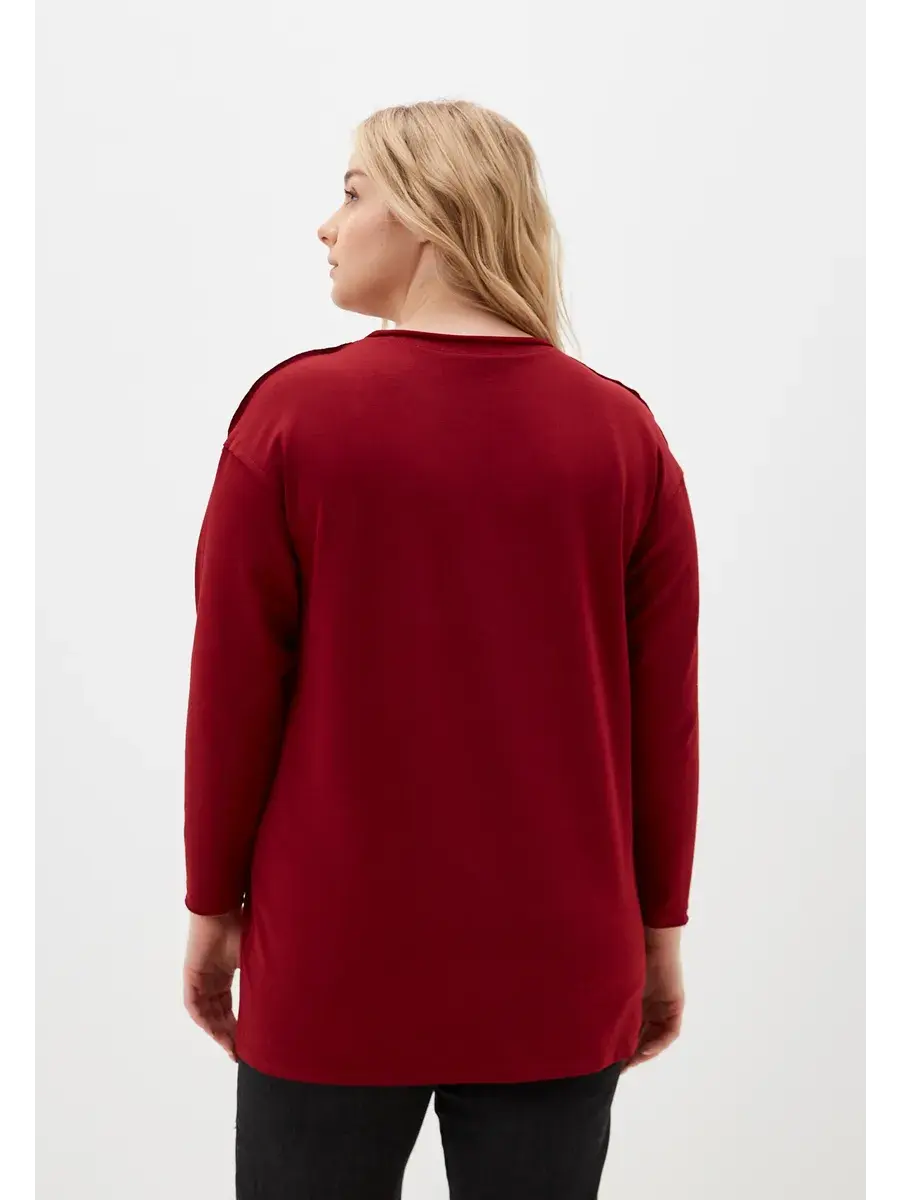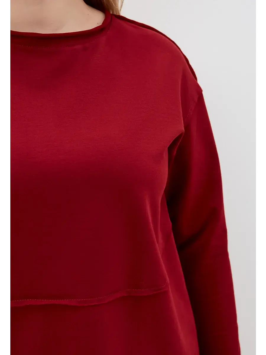 Женская туника больших размеров, выполнена из трикотажного полотна по типу футер двухнитка (без утепления и начеса), прямого кроя, с длинным рукавом. Женская кофта удлиненная до середины бедра.