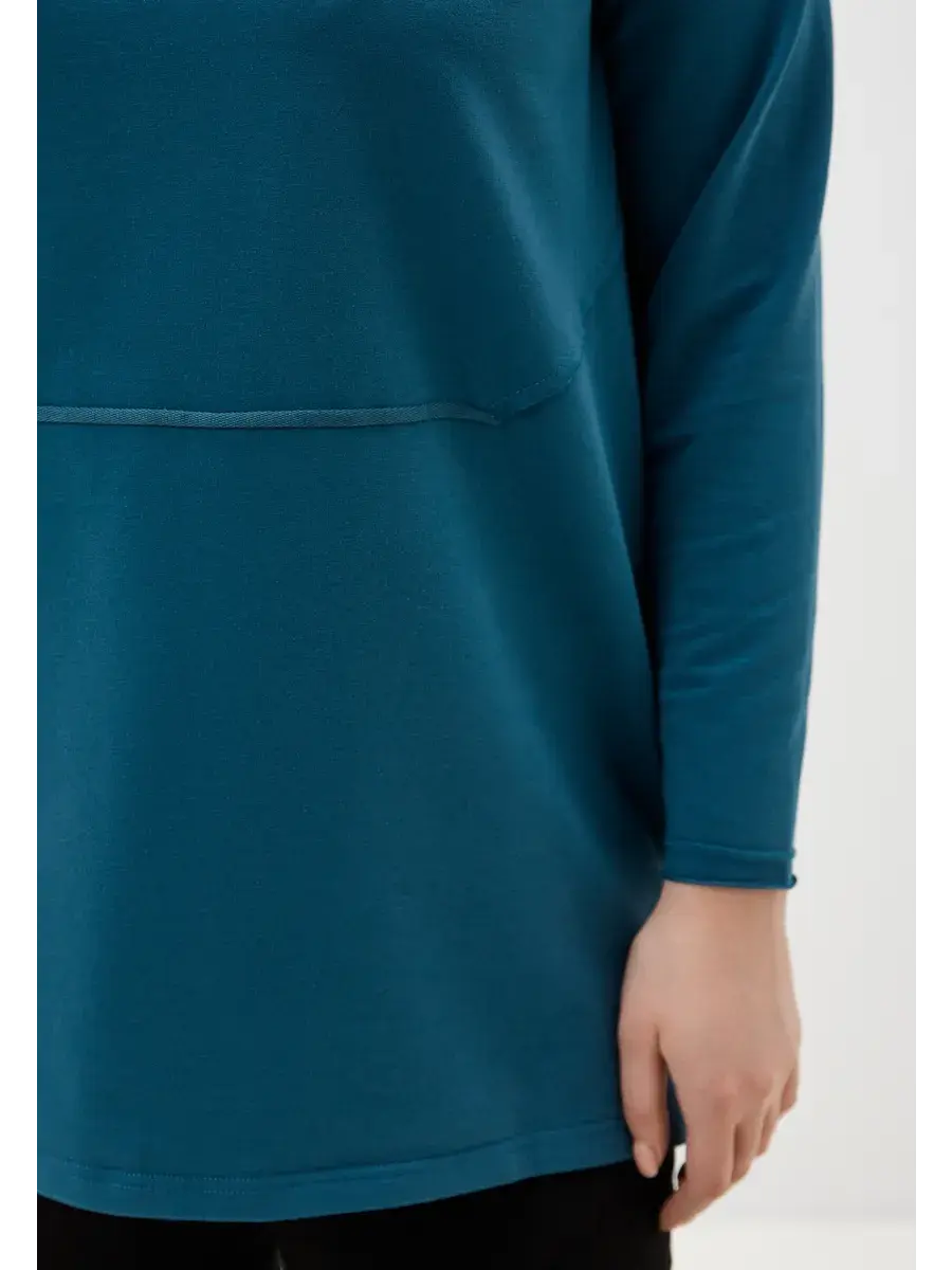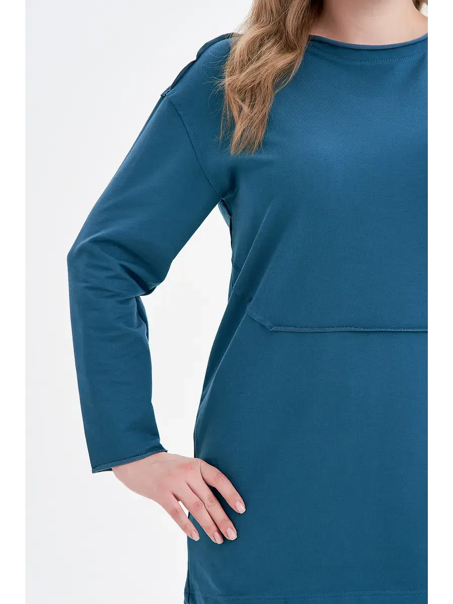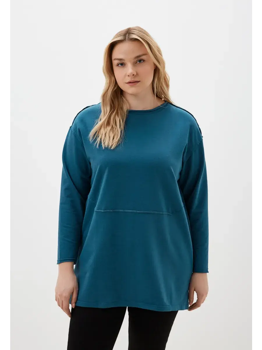 Женская туника больших размеров, выполнена из трикотажного полотна по типу футер двухнитка (без утепления и начеса), прямого кроя, с длинным рукавом. Женская кофта удлиненная до середины бедра.