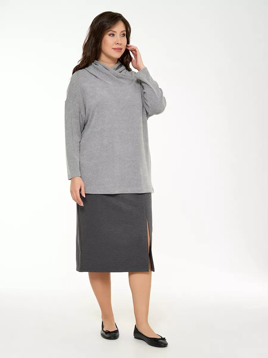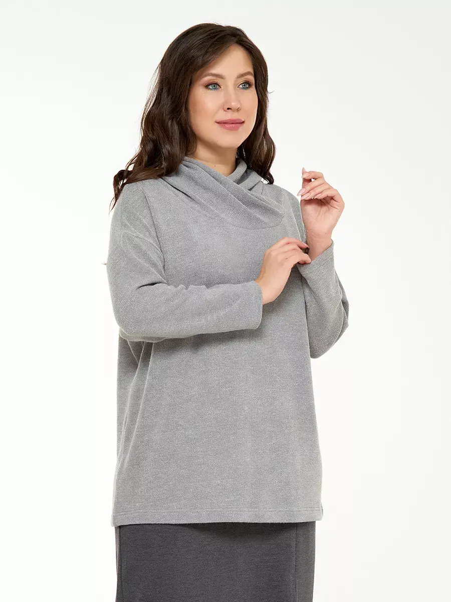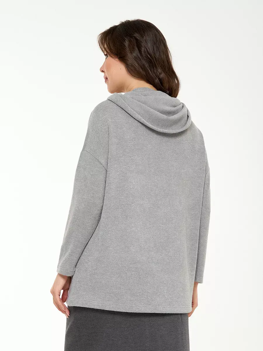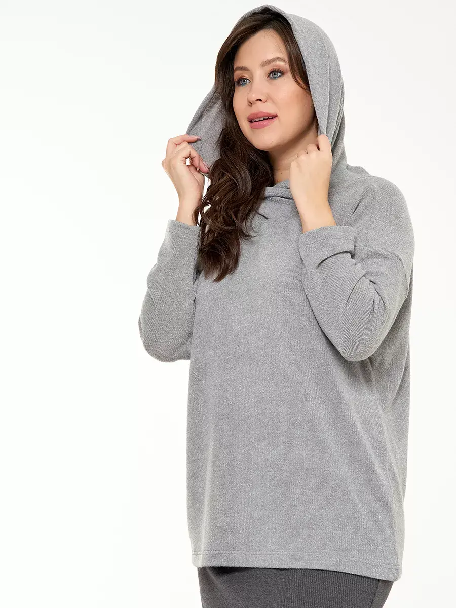 Повседневная базовая кофта больших размеров с длинным рукавом свободного кроя. Женская кофта из мягкого рыхлого трикотажажа имеет вариабельный воротник - как свитер, но можно носить и как капюшон. Длина по спинке 70см в размере 48-50.