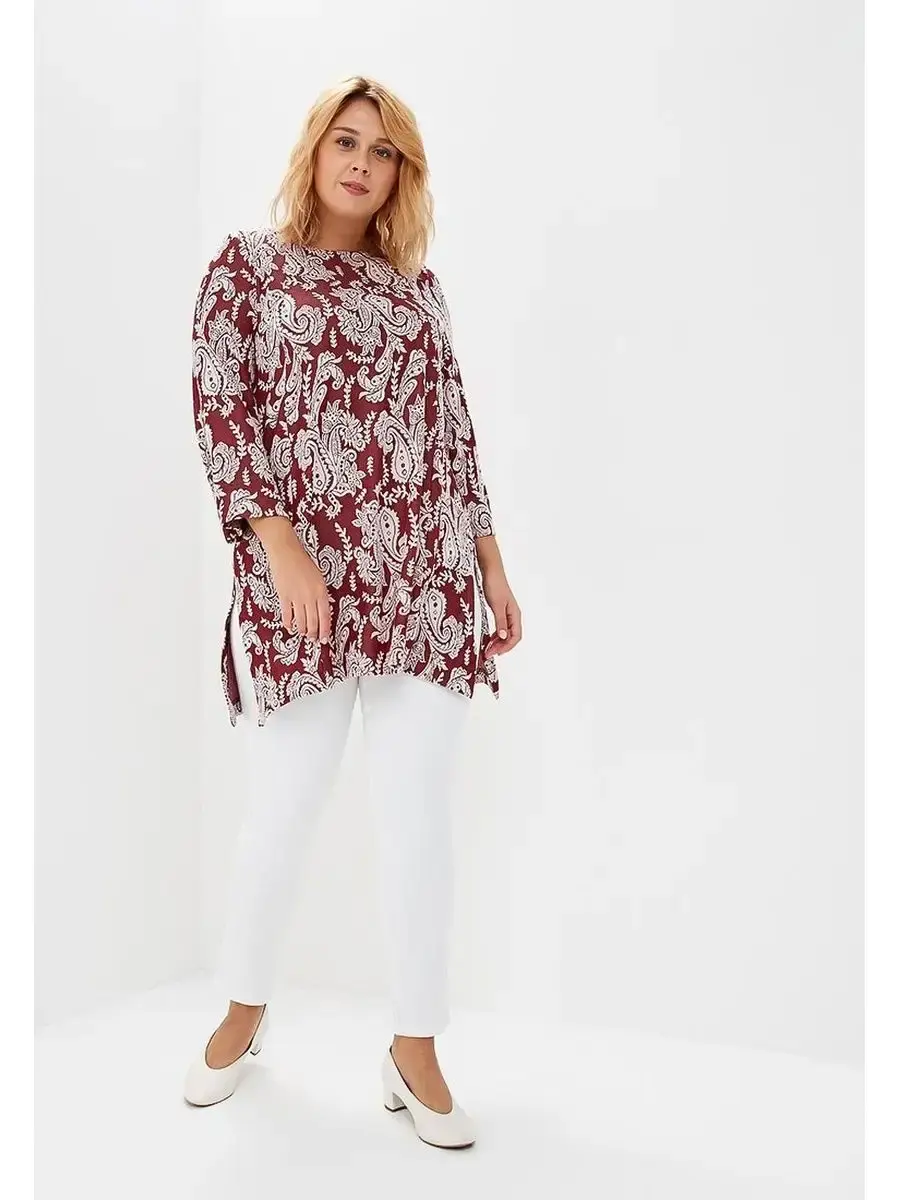 Стильная легкая туника из ткани с вискозой, с монохромным принтом турецкий огурец; вырезом горловины лодочка; втачными длинными рукавами колокол, модель расклешенная, с боковыми разрезами. Эталонный крой, напоминающий платье- шифт, классический рисунок, делают тунику несколько консервативной и элегантной одновременно. Модель нивелирует особенности фигуры, придает образу мягкость, женственность, сдержанность. Длина изделия по спинке/длина рукава соответственно:р.48-80,0см/57,2смр.50-80,5см/57,3смр.52-81,0см/57,4смр.54-81,5см/57,6смр.56-82,0см/57,7смр.58-82,5см/57,8смр.60-83,0см/57,9смр.62-83,5см/58,1смр.64-84,0см/58,1смр.66-84,5см/58,3смр.68-85,0см/58,3смр.70-85,5см/58,5см