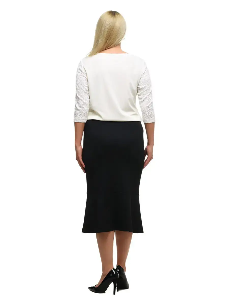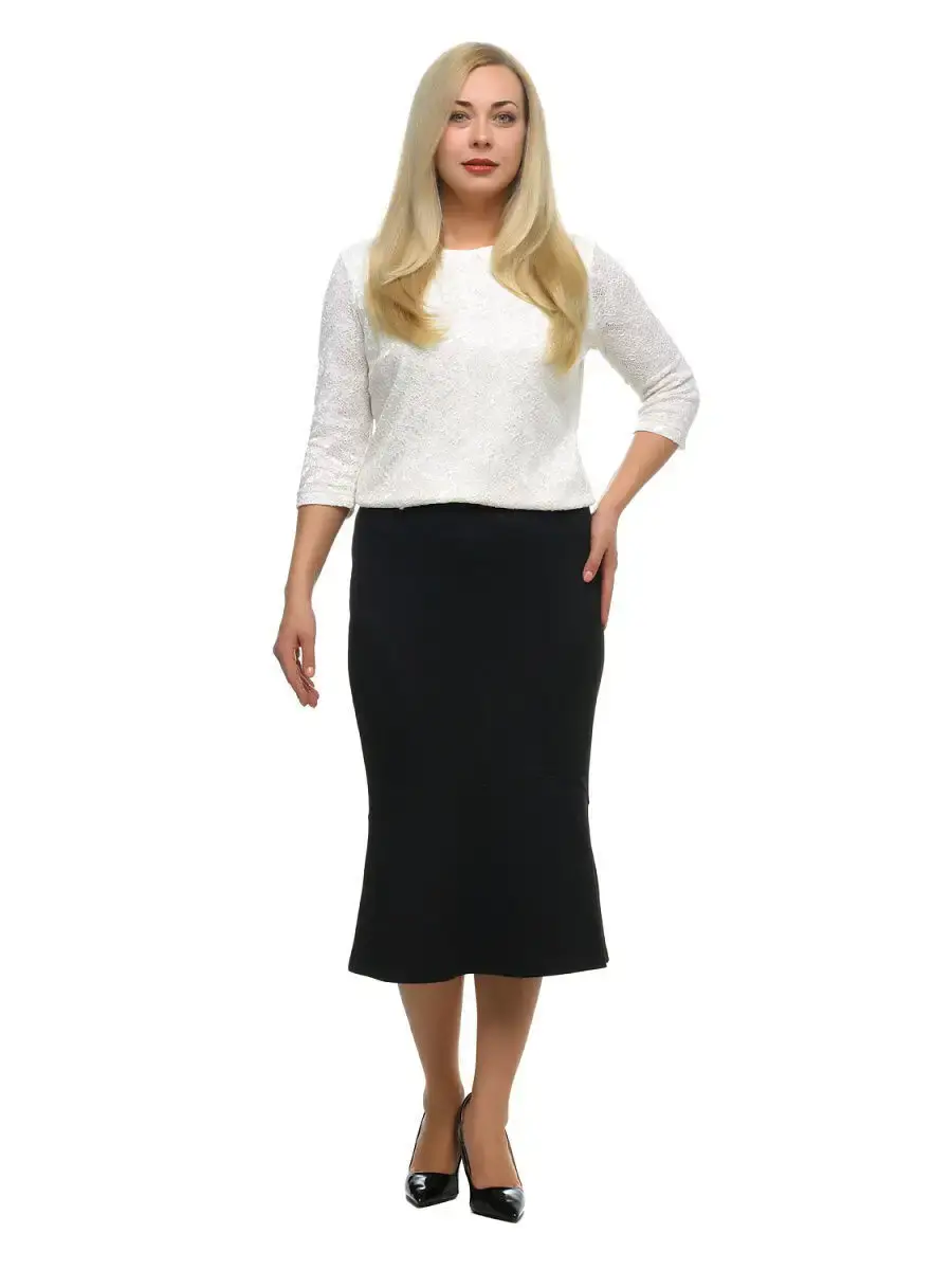Изысканная юбка длиной до середины голени из тонкого эластичного трикотажа, на комфортном поясе с резинкой. Модель зауженная отрезная на уровне колен, с баской по подолу. Крой, напоминающий юбки русалочий хвост, визуально сужают талию, удлиняют ноги, создают иллюзию песочных часов.
