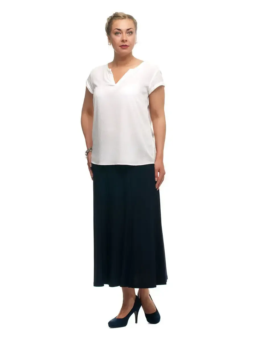 Эффектная юбка-клинка длиной миди из струящейся ткани на комфортном поясе с резинкой. Мягкая драпировка и расклешенный крой придают легкость походке и плавность движениям, идеально нивелируют особенности фигуры. Изделие идеально для создания изысканных женственных образов. В ней будет комфортно и в офисе, и на свидании, и в театре. Стильная универсальная юбка - отличный вариант, когда надо выглядеть презентабельно, нарядно, и элегантно.