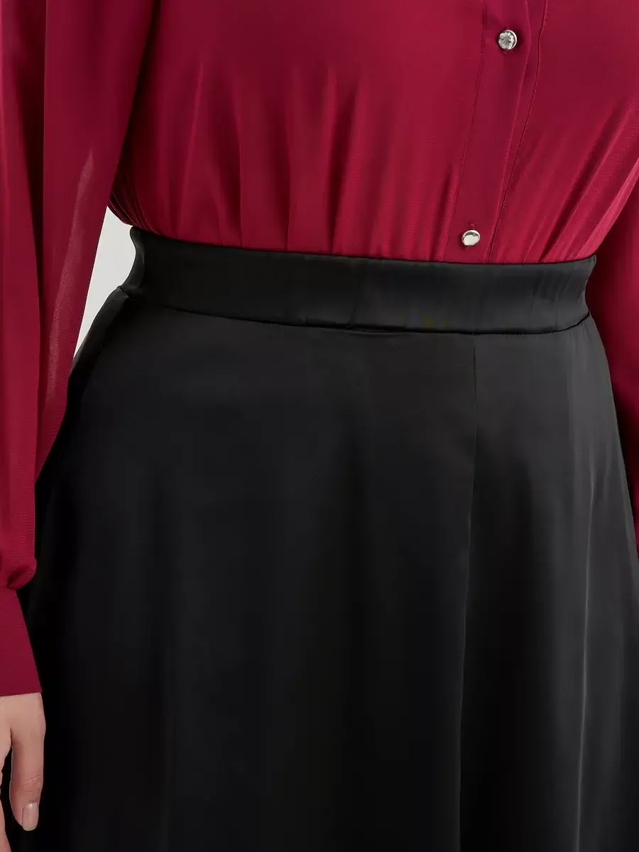 Эффектная длинная юбка бренда Olsi выполнена из струящегося текстильного плотного искусственного атласа, длина до щиколотки. Модель на широком поясе с резинкой, скрывающей лишние сантиметры в области талии, создающей эффект изящного силуэта и обеспечивающей комфорт в носке. Сочетайте эту юбку длинную с различными блузками и топами, чтобы создавать разнообразные образы . Будь то классический или модный стиль, может добавить шарма и элегантности вашему образу. С ней вы будете выглядеть стильно и модно в любой ситуации. Эта шелковая юбка также идеально подходит для особенных случаев , будь то вечеринка или корпоративное мероприятие. Она с завышенной талией подчеркнет вашу фигуру и придаст вам шикарный и элегантный вид . Юбка с завышенной талией, праздничные шелковые юбки, Юбка длинная без подклада, пояс на резинке. Юбка а силуэта макси не сковывает движение. Юбки для полных. Длинная юбка трапеция визуально вытянет вашу фигуру, и придаст элегантность внешнего вида, при этом не сковывая движений. Длинная юбка шелковая – это шикарный наряд как для офисного стиля, так и для праздничного настроения. Юбка без молнии.