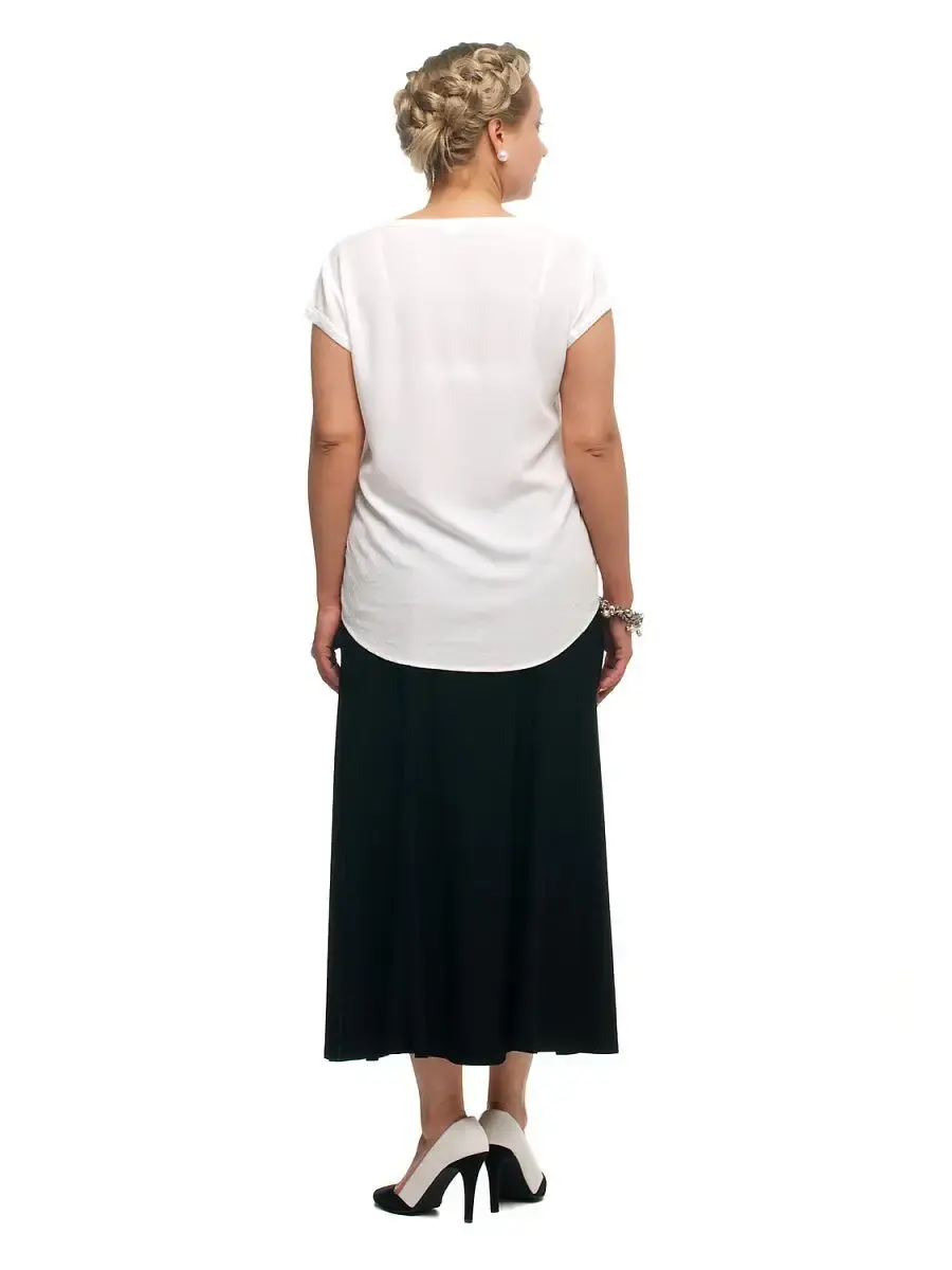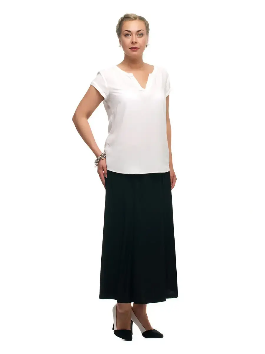 Эффектная юбка-клинка длиной миди из струящейся ткани на комфортном поясе с резинкой. Мягкая драпировка и расклешенный крой придают легкость походке и плавность движениям, идеально нивелируют особенности фигуры. Изделие идеально для создания изысканных женственных образов. В ней будет комфортно и в офисе, и на свидании, и в театре. Стильная универсальная юбка - отличный вариант, когда надо выглядеть презентабельно, нарядно, и элегантно.
