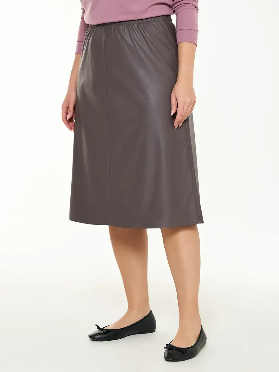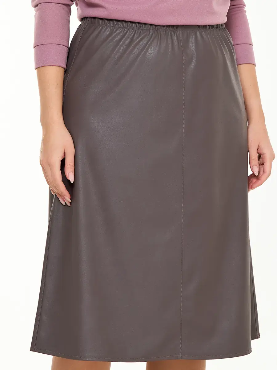 Женская юбка больших размеров четырехклинка, выполнена из экокожи на резинке. Длина юбки во всех размерах от р.52 до р.70 - 73см.