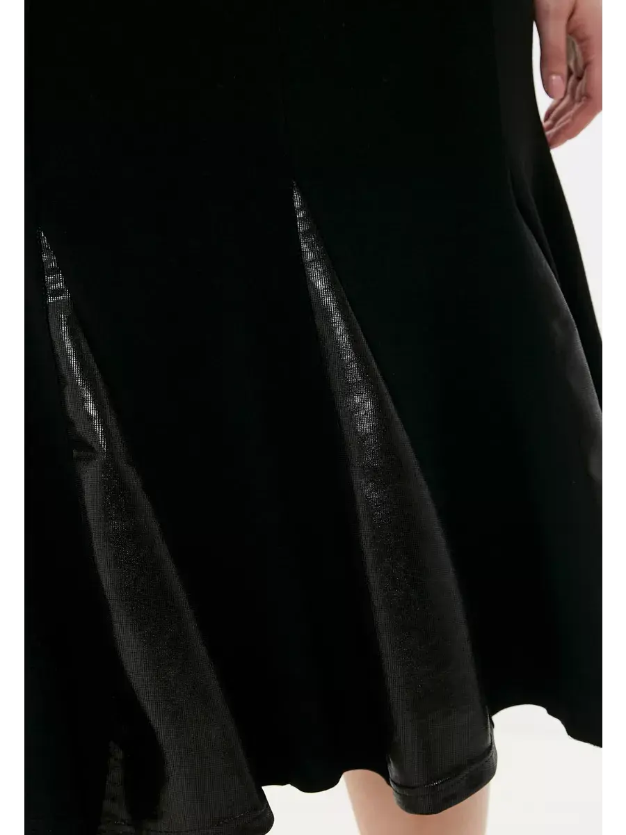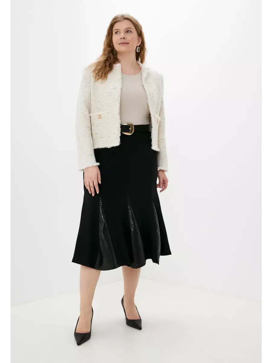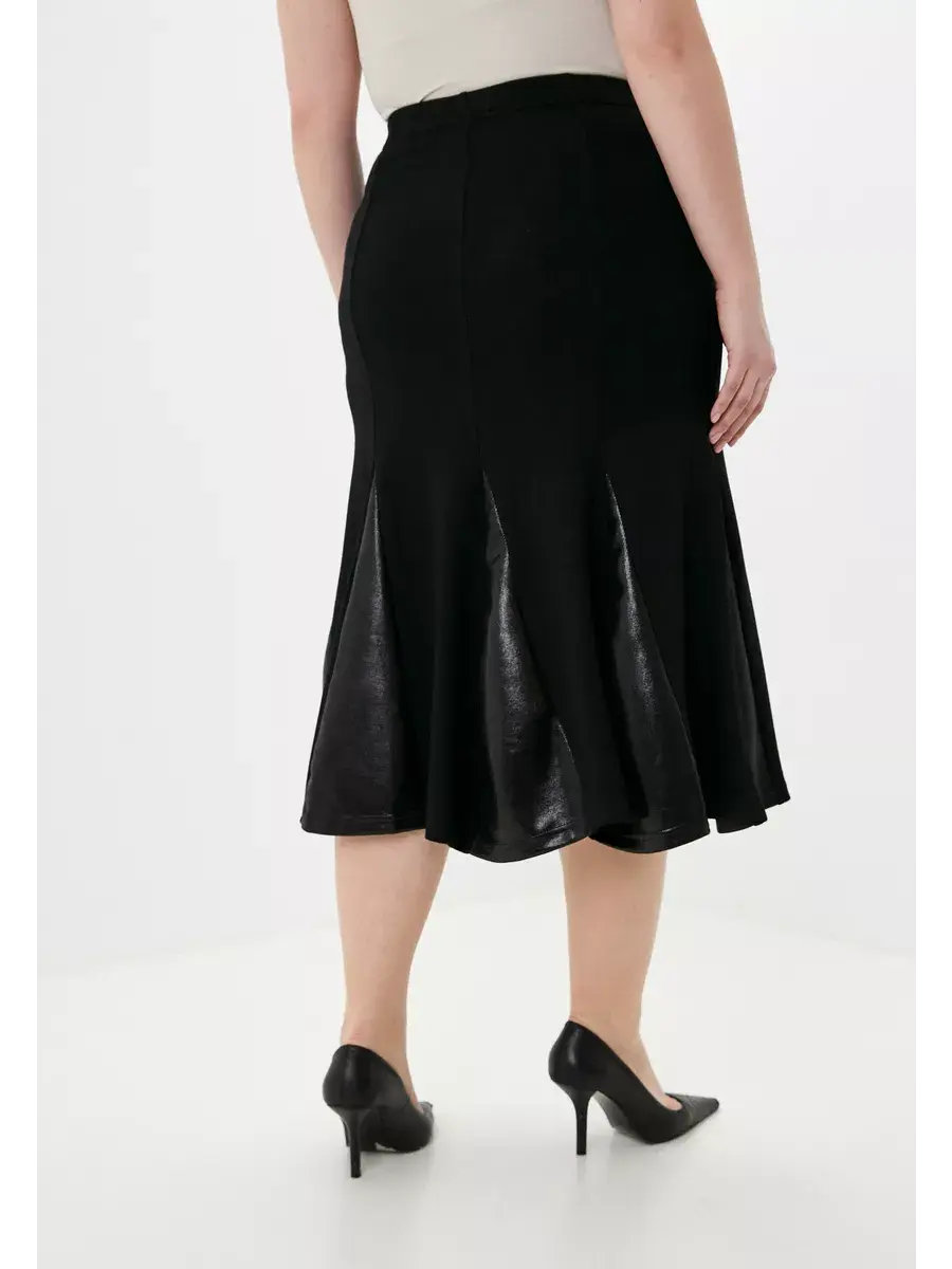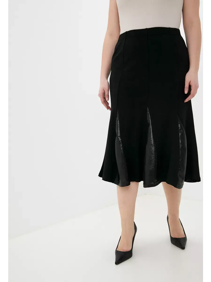 Элегантная юбка-годе длиной миди из «дышащей» ткани с вискозой. Модель полуприлегающего кроя; на антистрессовом поясе с резинкой; с клиньями на подоле из ткани с матовым блеском.