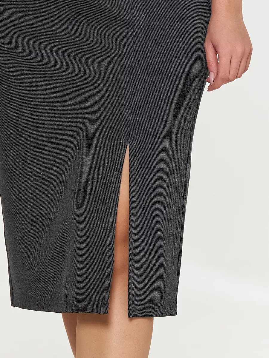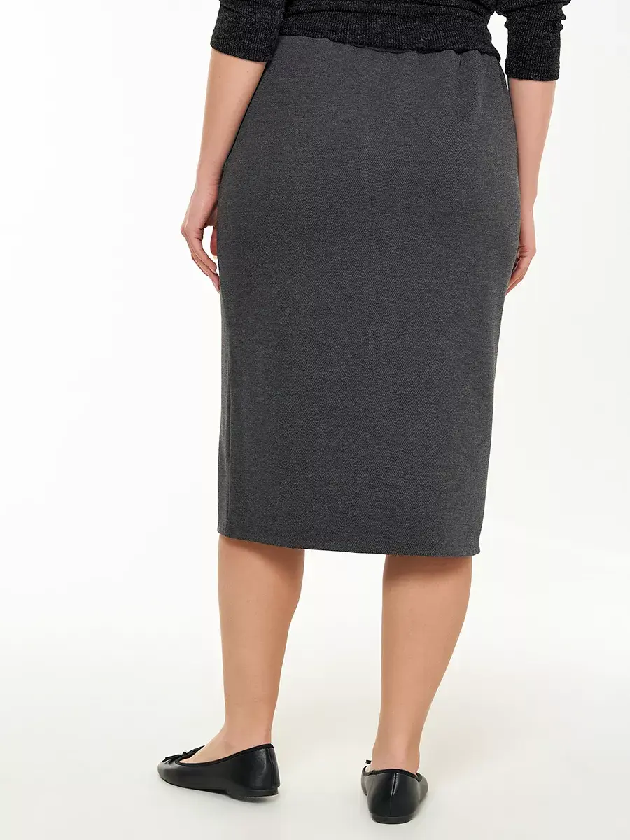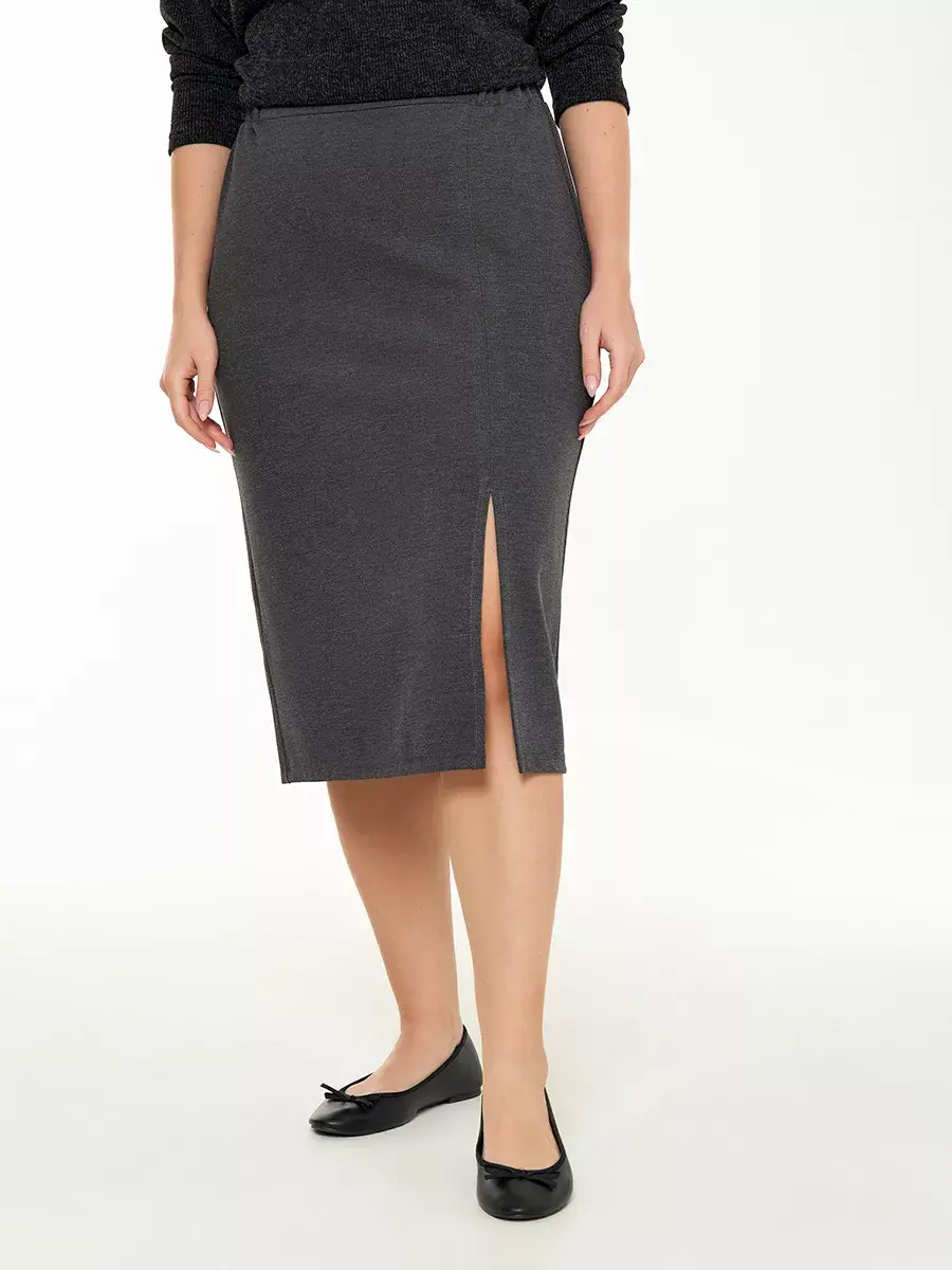 Юбка больших размеров выполнена из плотного приятного на ощупь трикотажного полотна на резинке с разрезом. Длина юбки во всех размерах 77см