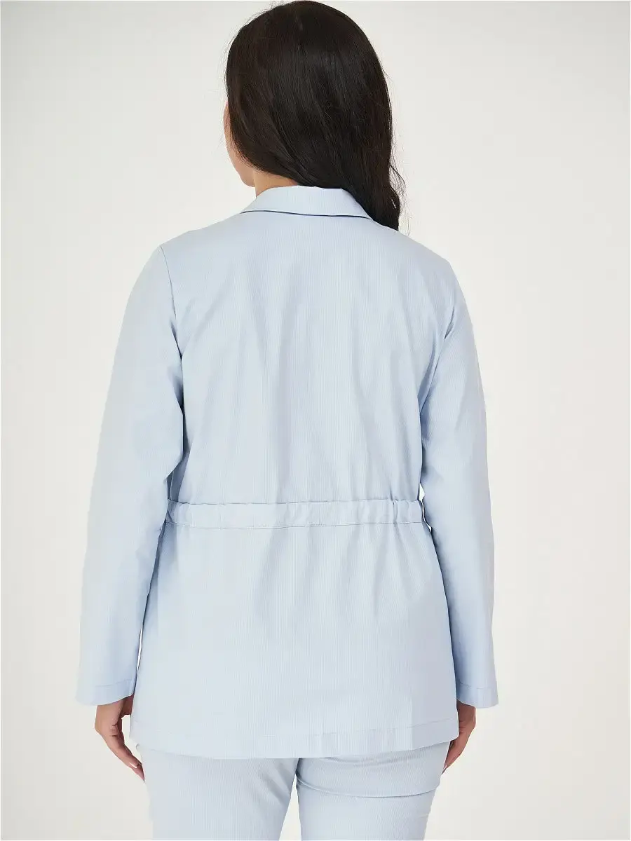 Рукав втачной одношовный. На талии кулиска с завязками. Длина до линии бёдер.