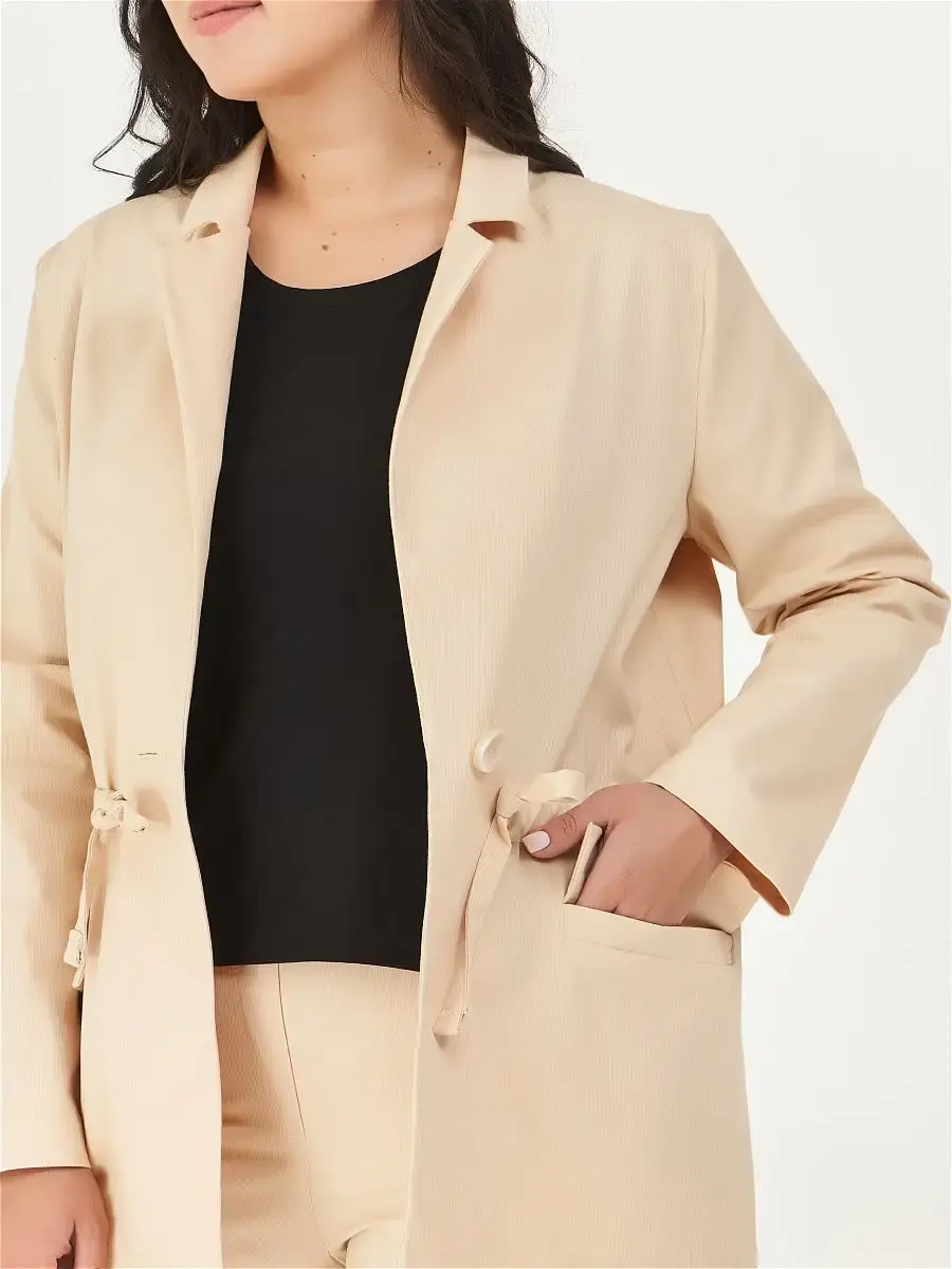 Рукав втачной одношовный. На талии кулиска с завязками. Длина до линии бёдер.