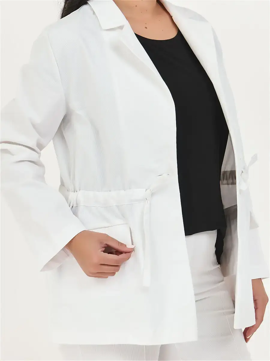 Рукав втачной одношовный. На талии кулиска с завязками. Длина до линии бёдер.