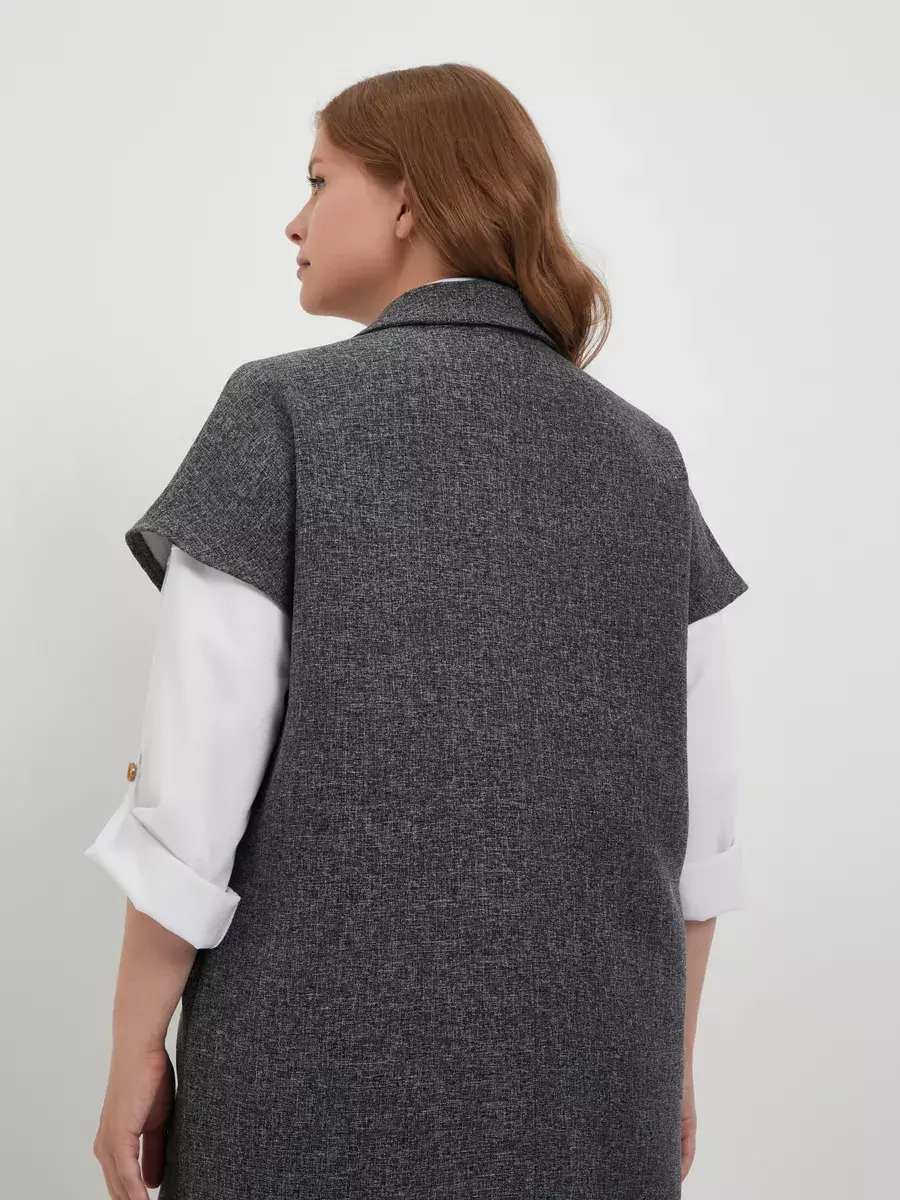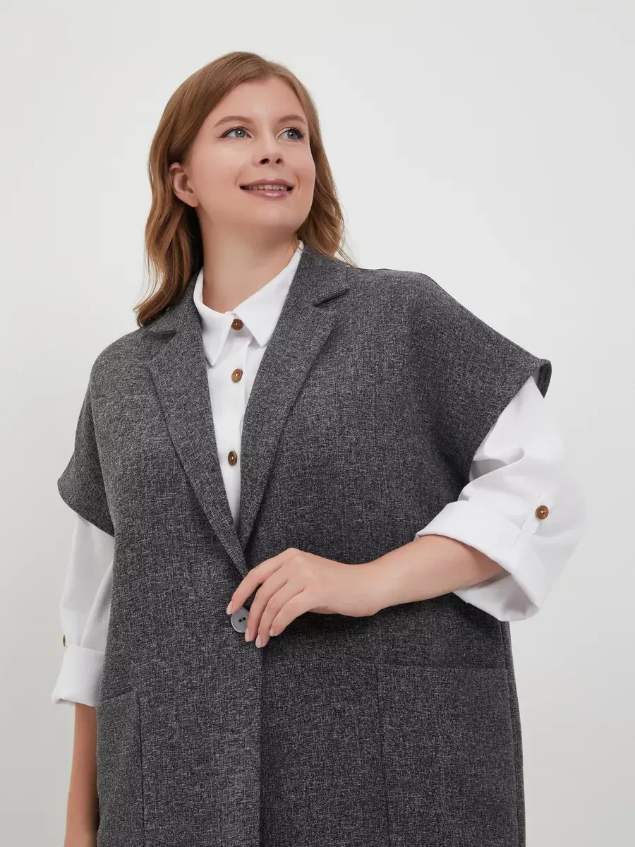 Жилет OLSI – это стильное и практичное решение для создания модных образов в прохладную погоду. Этот удлиненный жилет из плотного текстильного полотна , представленный в универсальных серых оттенках, станет незаменимой вещью в гардеробе любой женщины, независимо от размера. Модель с короткими рукавами и накладными карманами не только удобна в носке, но и добавляет образу современный и лаконичный акцент. Жилет OLSI прекрасно сочетается как с деловыми костюмами, так и с повседневными Looks, подчеркивая индивидуальный стиль и создавая ощущение уверенности. Благодаря качественному материалу и продуманному крою, этот жилет станет любимой вещью в вашем гардеробе на долгие годы.