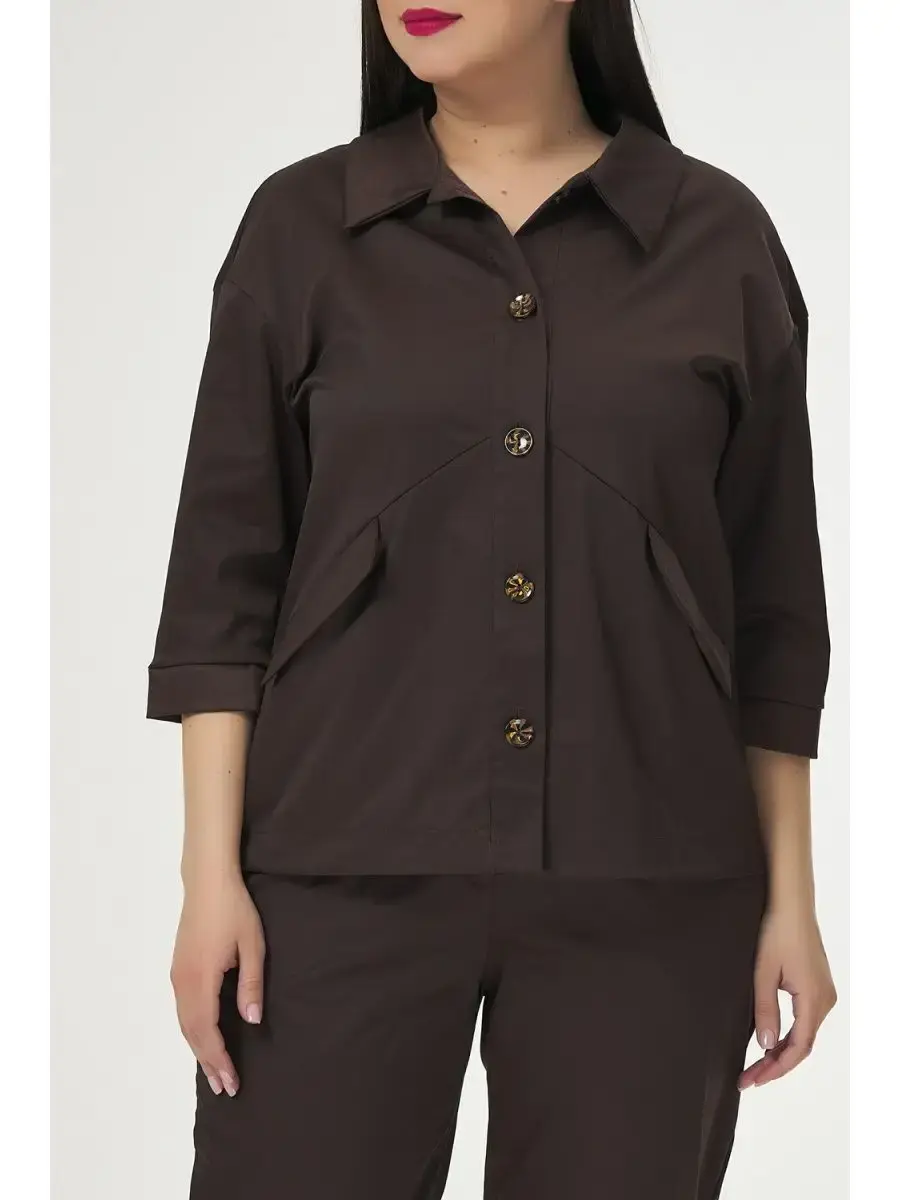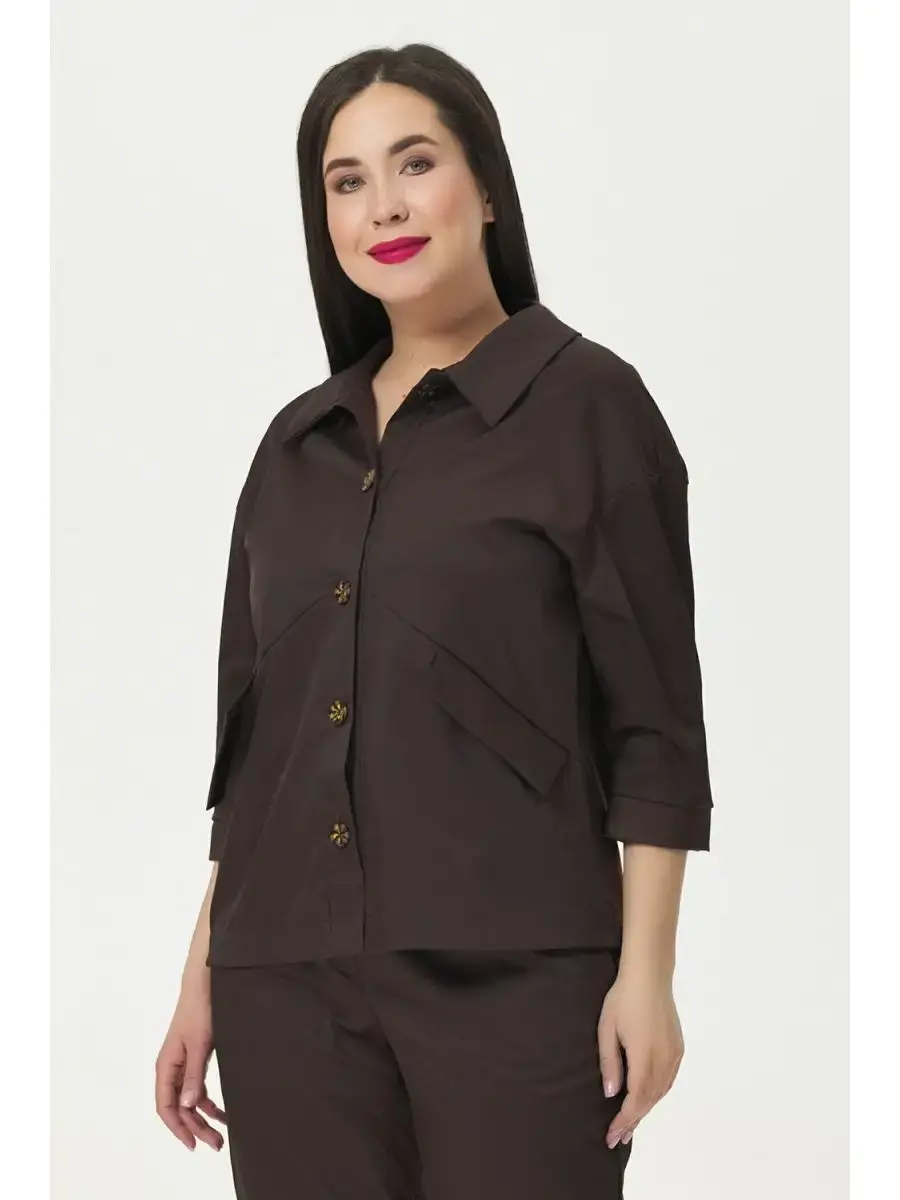 Жакет прямого силуэта свободной формы из текстильного полотна с эластаном. Отложной воротник. Просторный рукав 3/4, имеются карманы и застёгивается на пуговицы. Длина по спинке:р.48-65смр.50-65,5смр.52-66смр.54-66,5смр.56-67смр.58-67,5смр.60-68смр.62-68,5смр.64-69смр.66-69,5смр.68-70смр.70-70,5смДлина рукава 44см.